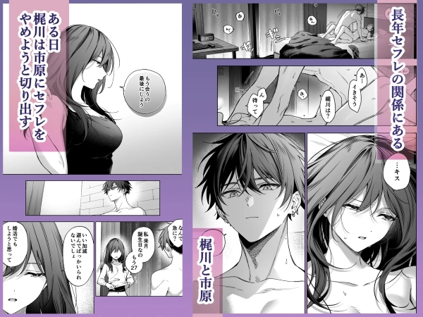梶川は市原と長年セフレという関係を続けてきたものの、実は市原のことが本気で好きという苦しい関係でした。