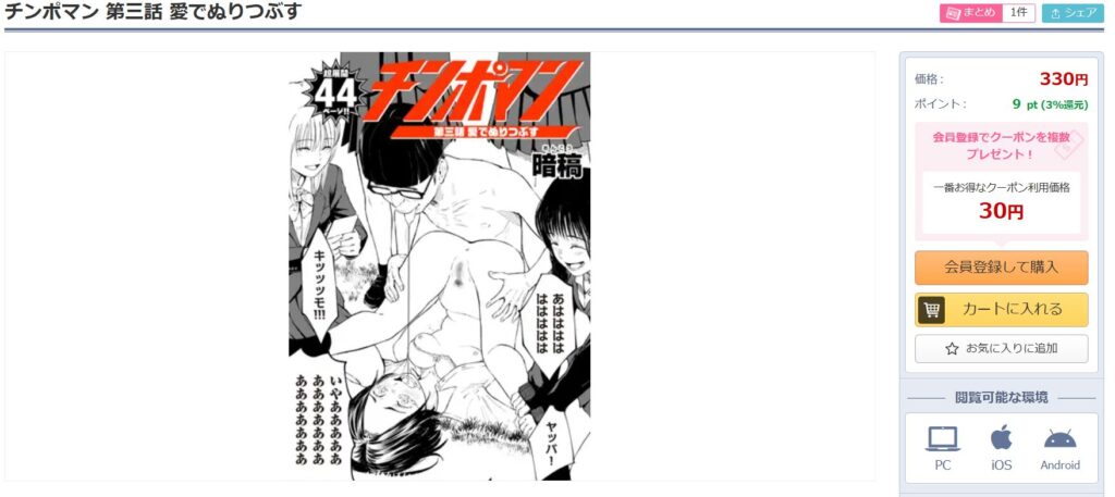 【チンポマン第三話】最もお得に読めるのはDLsite